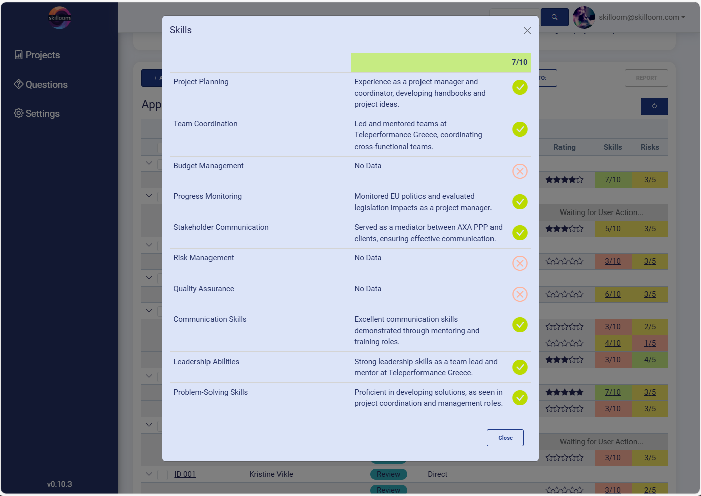 Date Created – when the project was created in Skilloom system.