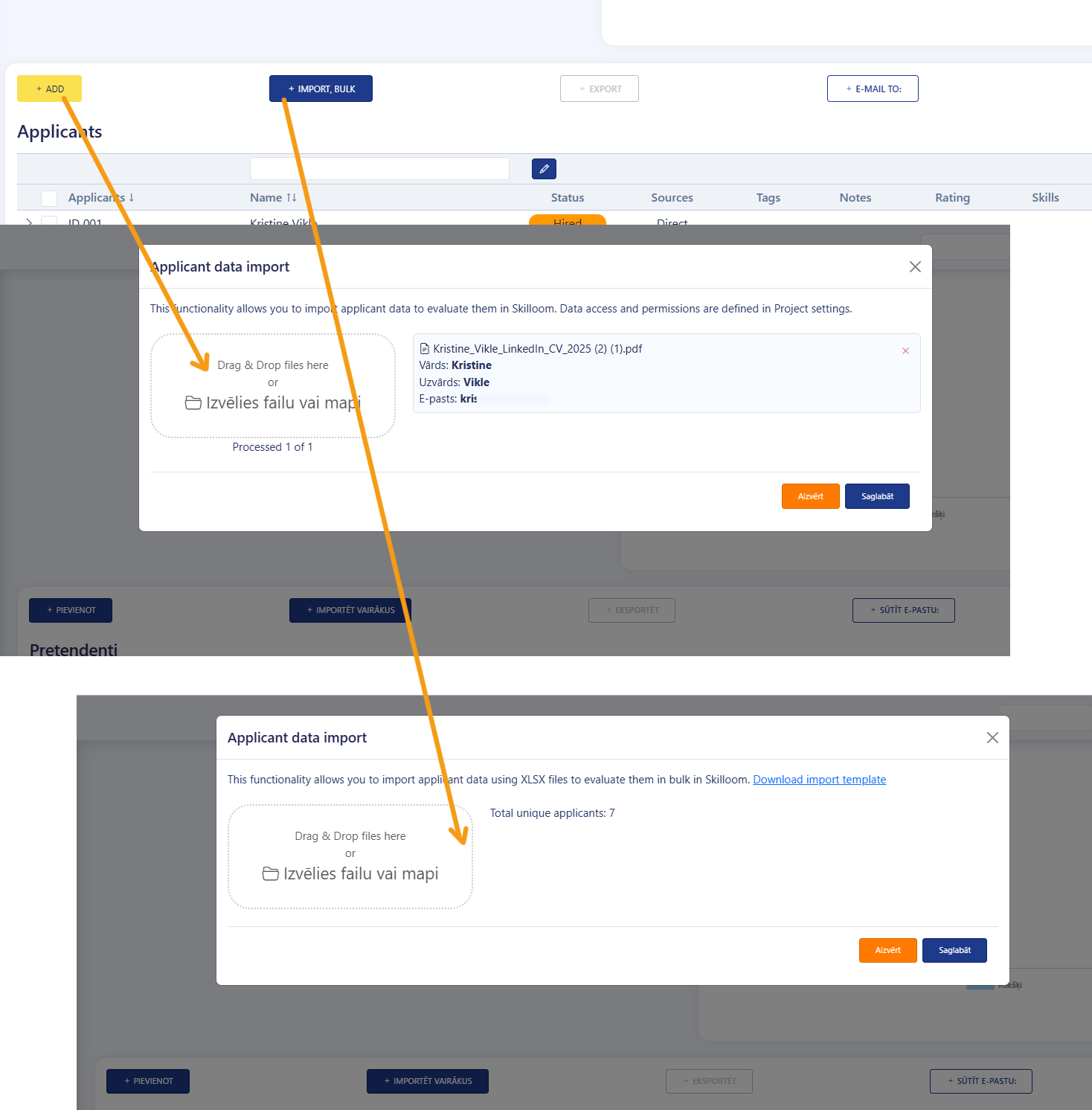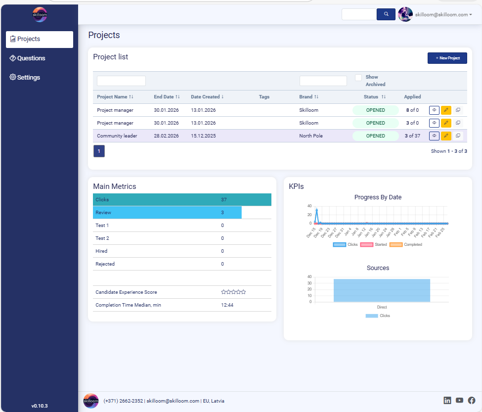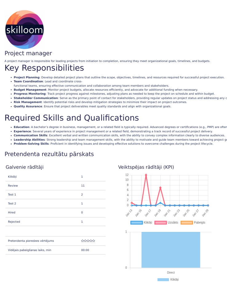 Ready integration with cv.lv job add portal allows you to receive applicant information in Skilloom and analyse them as direct applications.