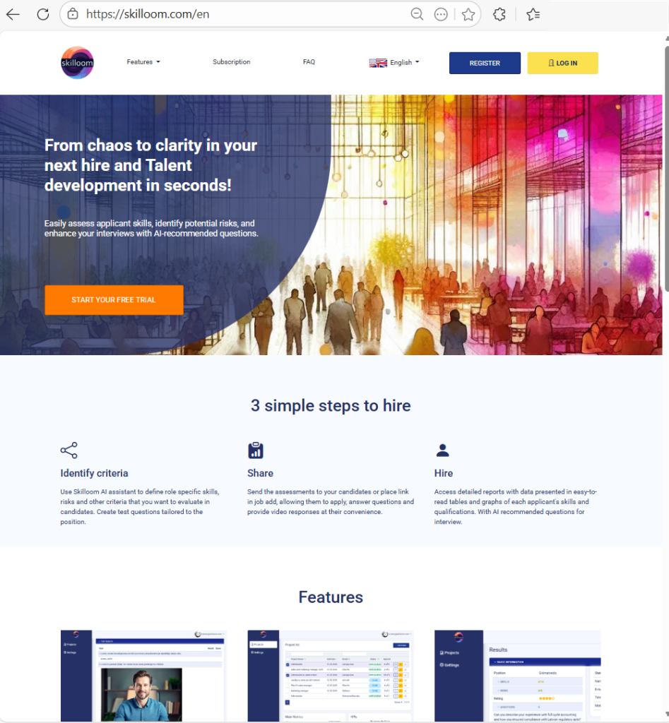 This manual explains how to use Skilloom to run hiring projects, review applicants and build simple onboarding and development plans. It uses plain language and short steps.