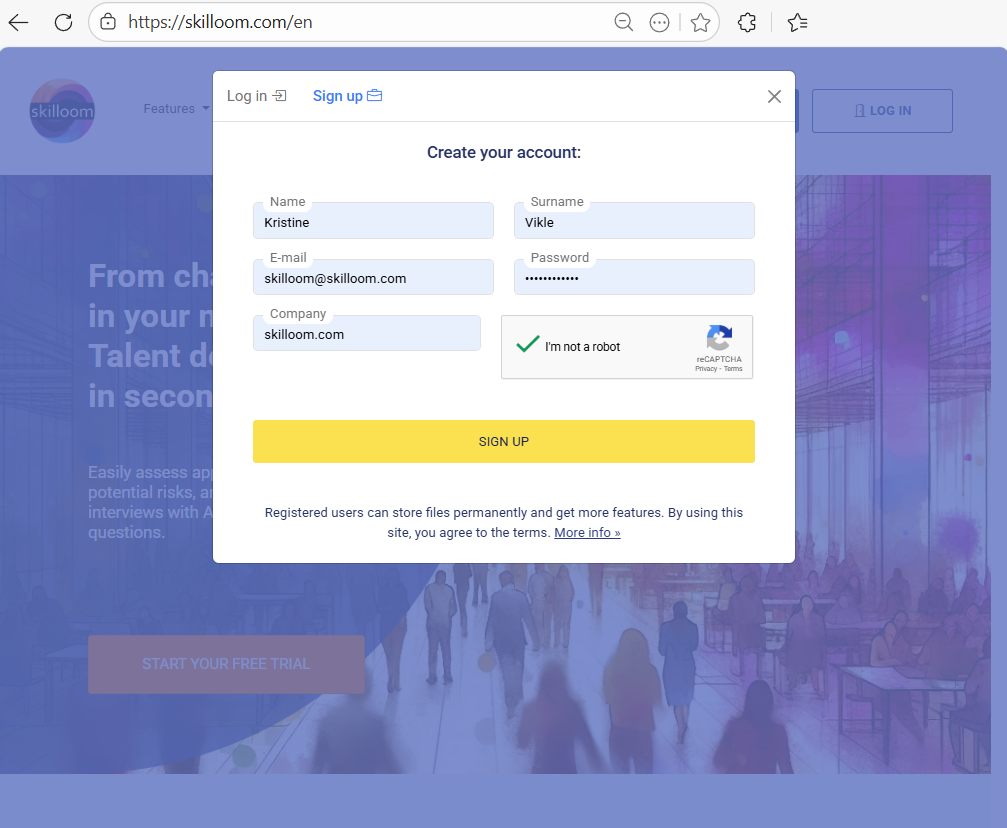 Go to skilloom.com and choose to Sign up.