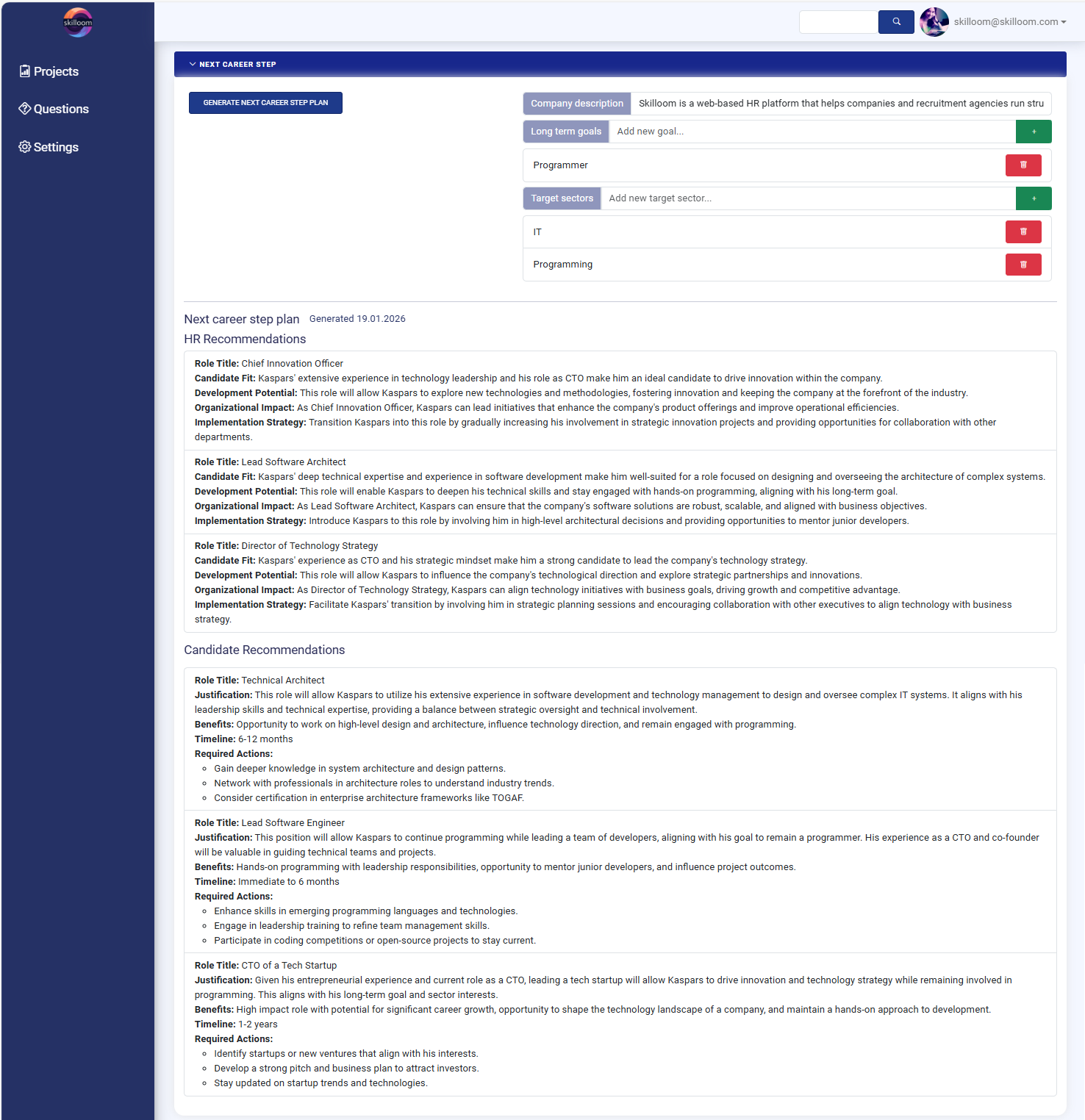 For each recommended career step, Skilloom provides: